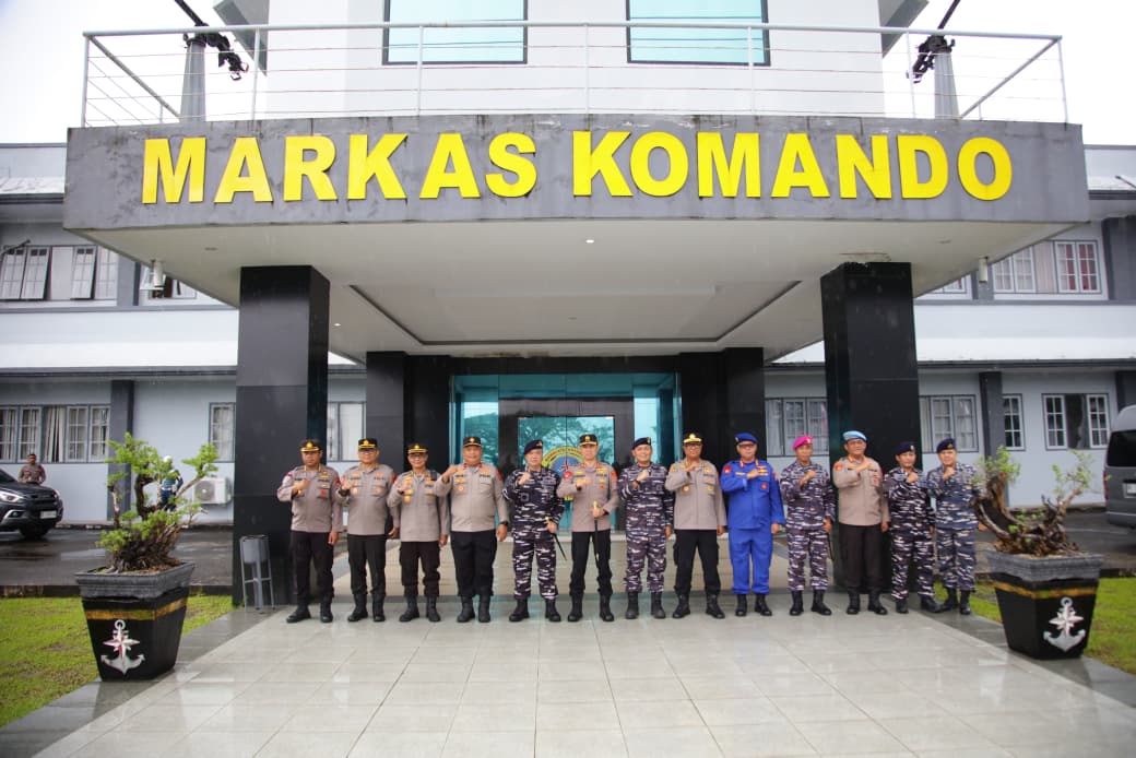 _Tiba di loby Makodaeral Ambon, Kapolda Maluku di sambut langsung oleh Dankodaeral Ambon Laksda TNI Hanarko Djodi Pamungkas SH yang di dampingi Asisten Operasional, Asisten Teretorial, Asisten Intelkam dan Danyon Marinir Kodaeral Ambon._
