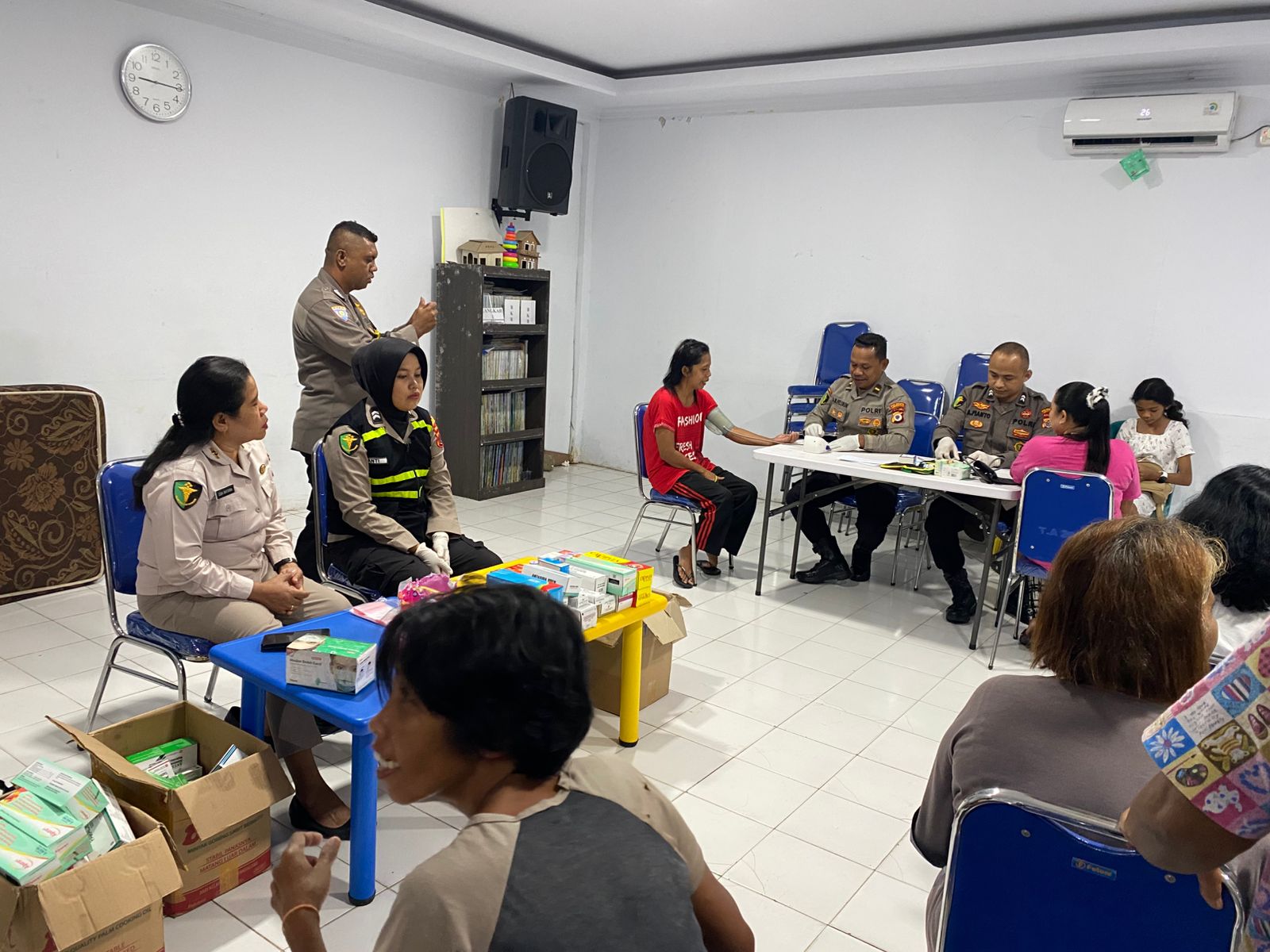 Bhakti kesehatan yang merupakan bentuk kepedulian Polri kepada masyarakat ini dilaksanakan di kantor desa Poka, kecamatan Teluk Ambon, kota Ambon.