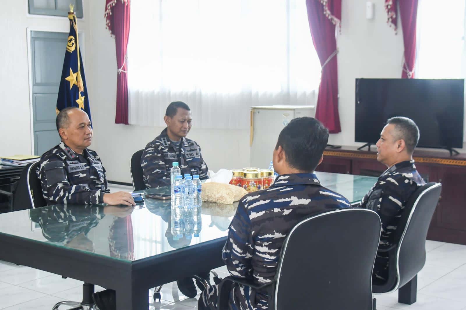 Laksda TNI Hanarko Djodi P. menerima _Courtesy Call_ Tim Zona Integritas TNI Angkatan Laut di Mako Kodaeral IX. Tim Zona Integritas diantaranya Kolonel Laut (S) Nanang Widiatmoko, S.E., M.T., Letkol Laut (P) Tri Atmoko, S.E., CRMP., Letkol Laut (P) Ardian Yudopratomo, M.Sc., M.Tr.Opsla., Letkol Laut (S) Junaidi, S.E., M.Tr.Opsla., Mayor Laut (E) Purnomo.