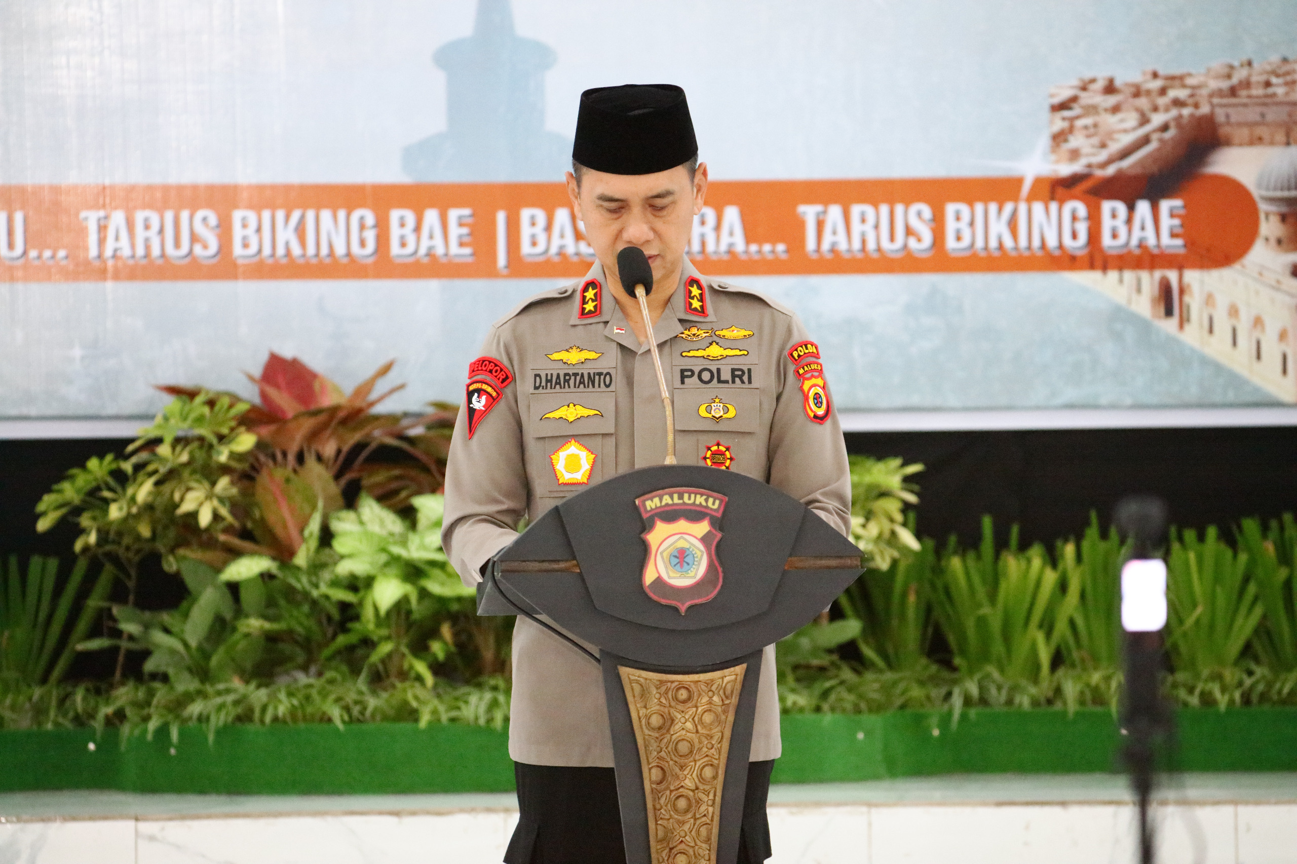 Dalam sambutannya, Kapolda Maluku menyampaikan keprihatinan mendalam atas peristiwa kekerasan yang terjadi di Kota Tual, yang melibatkan seorang anggota Polri.