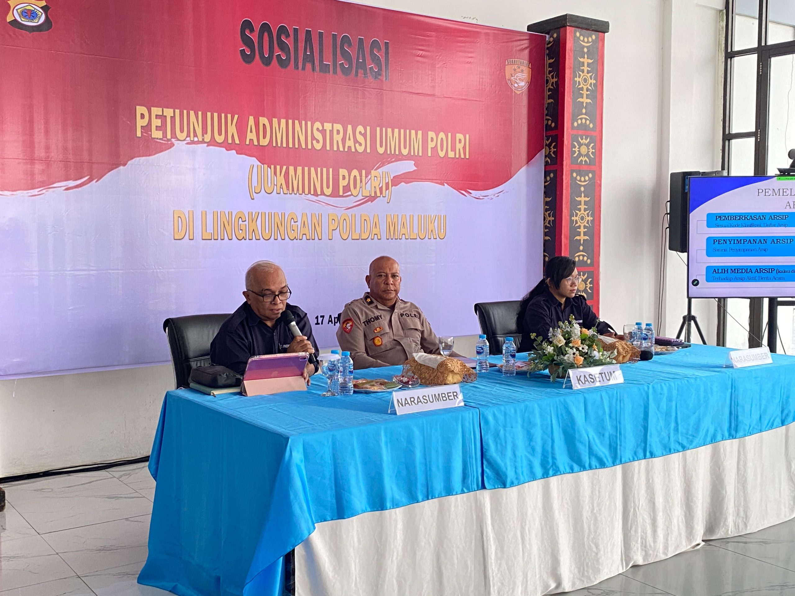 Sosialisasi dibuka Kepala Setum Polda Maluku, Kompol Thomy Siahaya, yang menekankan pentingnya administrasi sebagai fondasi utama dalam mendukung kinerja organisasi.