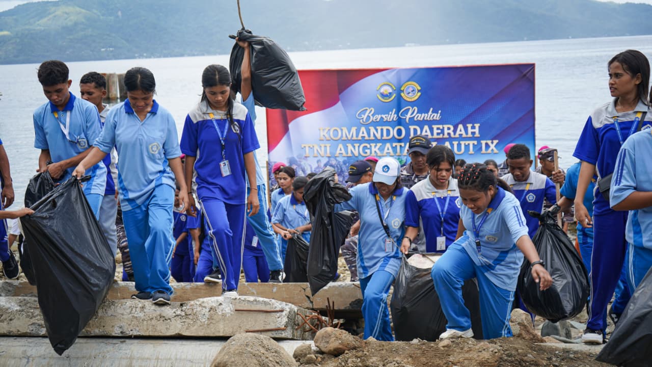 Dalam rangka mendukung pelaksanaan Operasi Trisila TNI Angkatan Laut ke-26 Tahun 2026, Komando Daerah TNl Angkatan Laut IX (Kodaeral IX) melaksanakan kegiatan bersih-bersih pantai ciptakan lingkungan asri yang dipusatkan di pesisir Pantai Tawiri, Kota Ambon, Maluku pada Sabtu (21/2/2026).