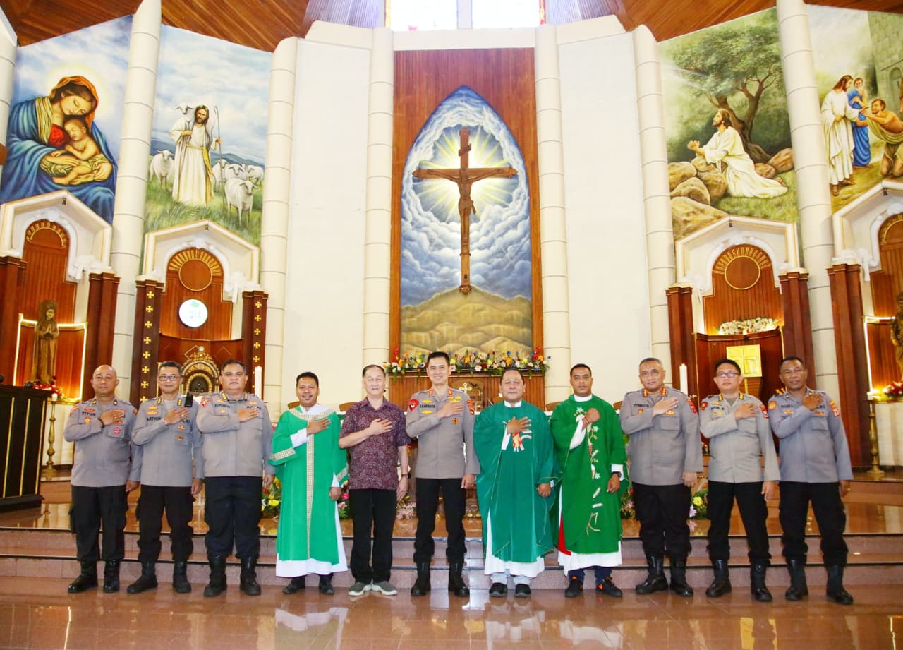 Kegiatan yang dimulai pukul 10.00 WIT tersebut turut dihadiri Irwasda Polda Maluku, Karo Ops, Kabidkum, Kapolresta Ambon, para pejabat utama Polda Maluku, jajaran Polresta Ambon, serta ratusan umat Katolik termasuk Pastor Ignasius Refo, Ketua Dewan Paroki, pengurus lingkungan, dan para biarawan-biarawati.
