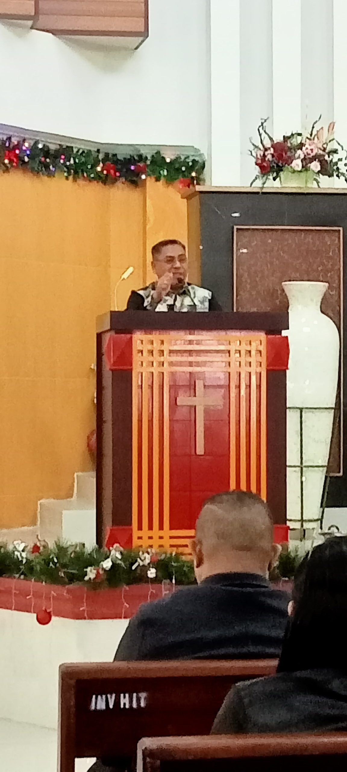 Perayaan Natal kemudian dilanjutkan dengan ibadah yang dipimpin oleh “Pdt. Lis Marantika dengan tema: