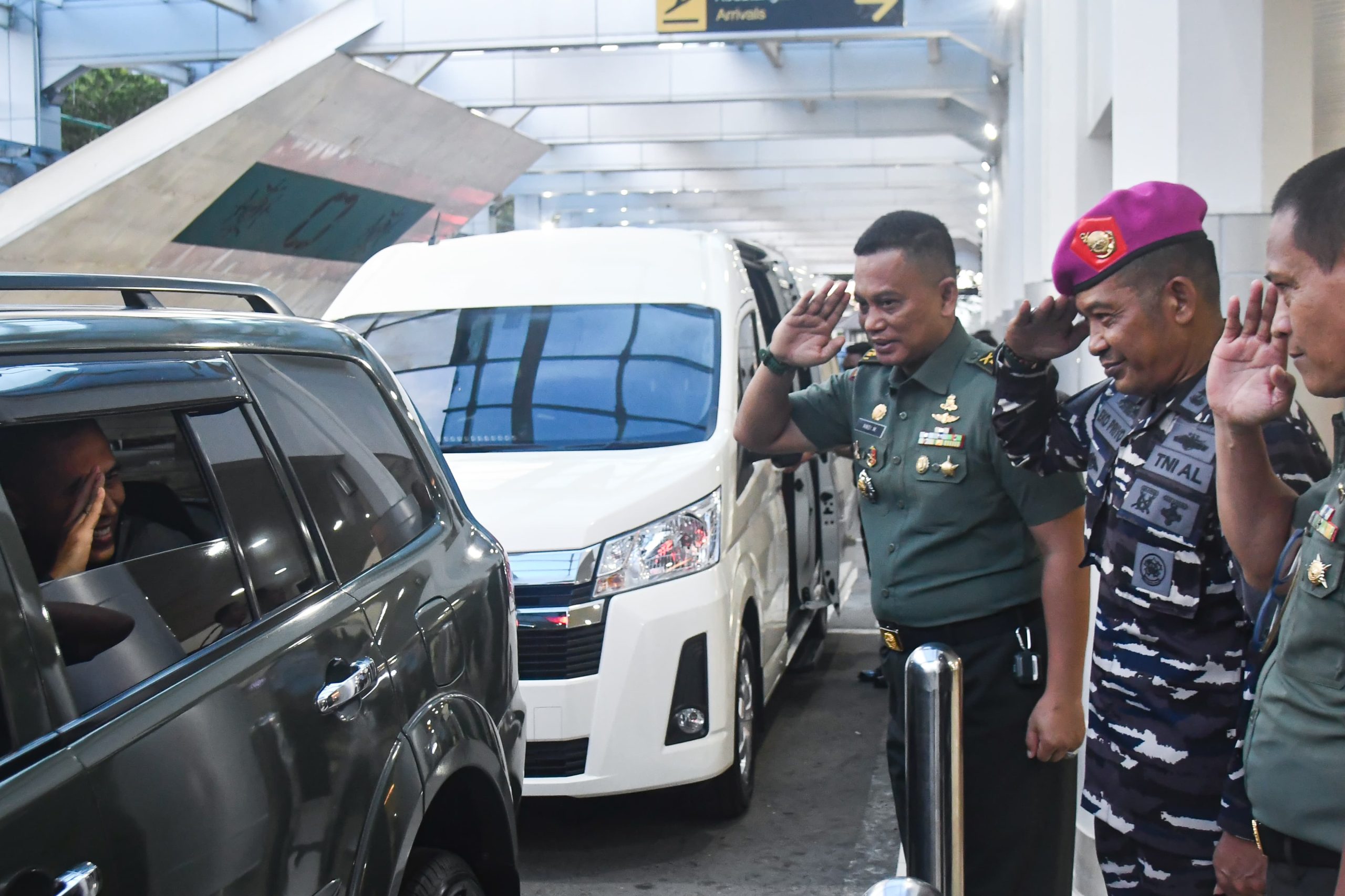 Inspektur Komando Daerah Angkatan Laut lX (lr Kodaeral IX), Kolonel Marinir Eko Priyo Handoyo dan Irum lnspektorat Kodaeral IX, Letkol Laut (KH) Dr. Togar T.A Pangaribuan turut menyambut kedatangan rombongan Inspektorat Jenderal TNI di Bandara Udara Pattimura, Kota Ambon, Maluku pada Senin (2/1/2026).