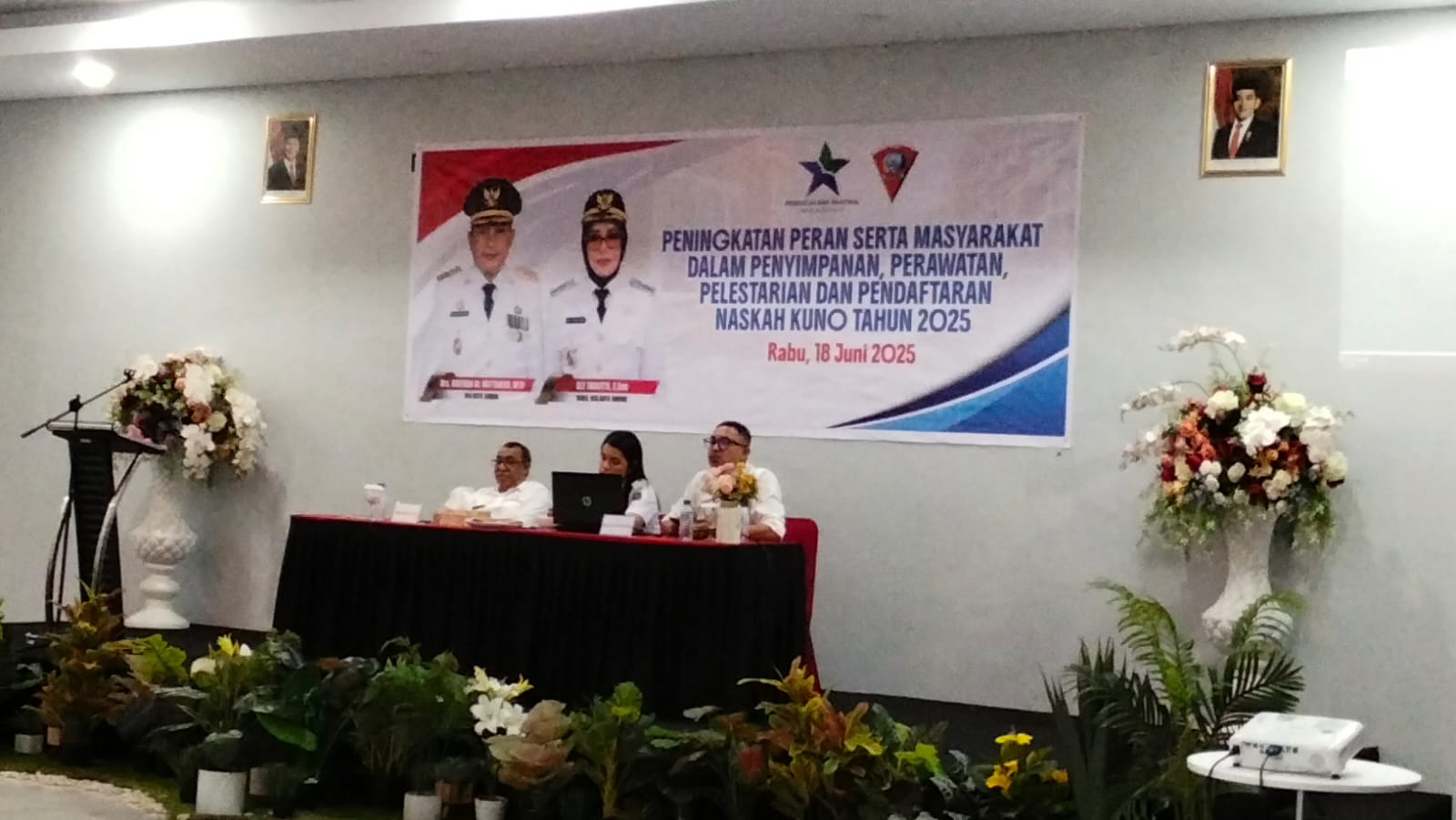 MANGGUREBEMAJU.COM, Dinas Perpustakaan dan Kearsipan Kota Ambon menggelar kegiatan Peran Serta Masyarakat dalam Penyimpanan, Perawatan, Pelestarian dan Pendaftaran Naskah Kuno Tahun 2025, bertempat di Hotel Grand Avira, Ambon, Rabu (18/6/2025).