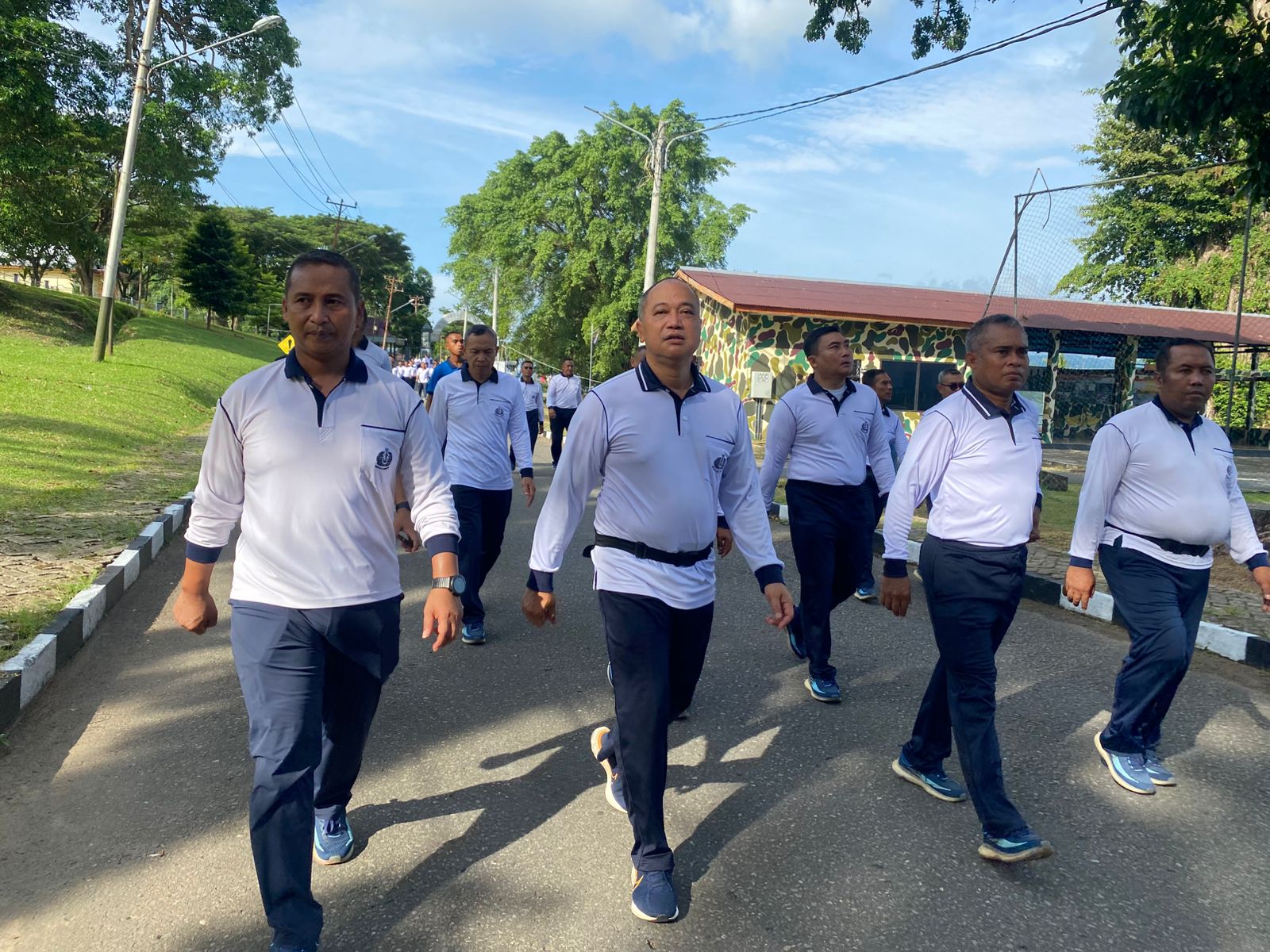“Kesatrian kita ini sangat nyaman, udara segar cocok untuk olahraga. Jalan santai sangat bagus untuk kesehatan karena meningkatkan fungsi paru-paru, mengurangi stres, memperkuat imun, memperbaiki mood, meningkatkan fokus, serta menurunkan risiko penyakit kronis,” terangnya disela kegiatan olahraga.