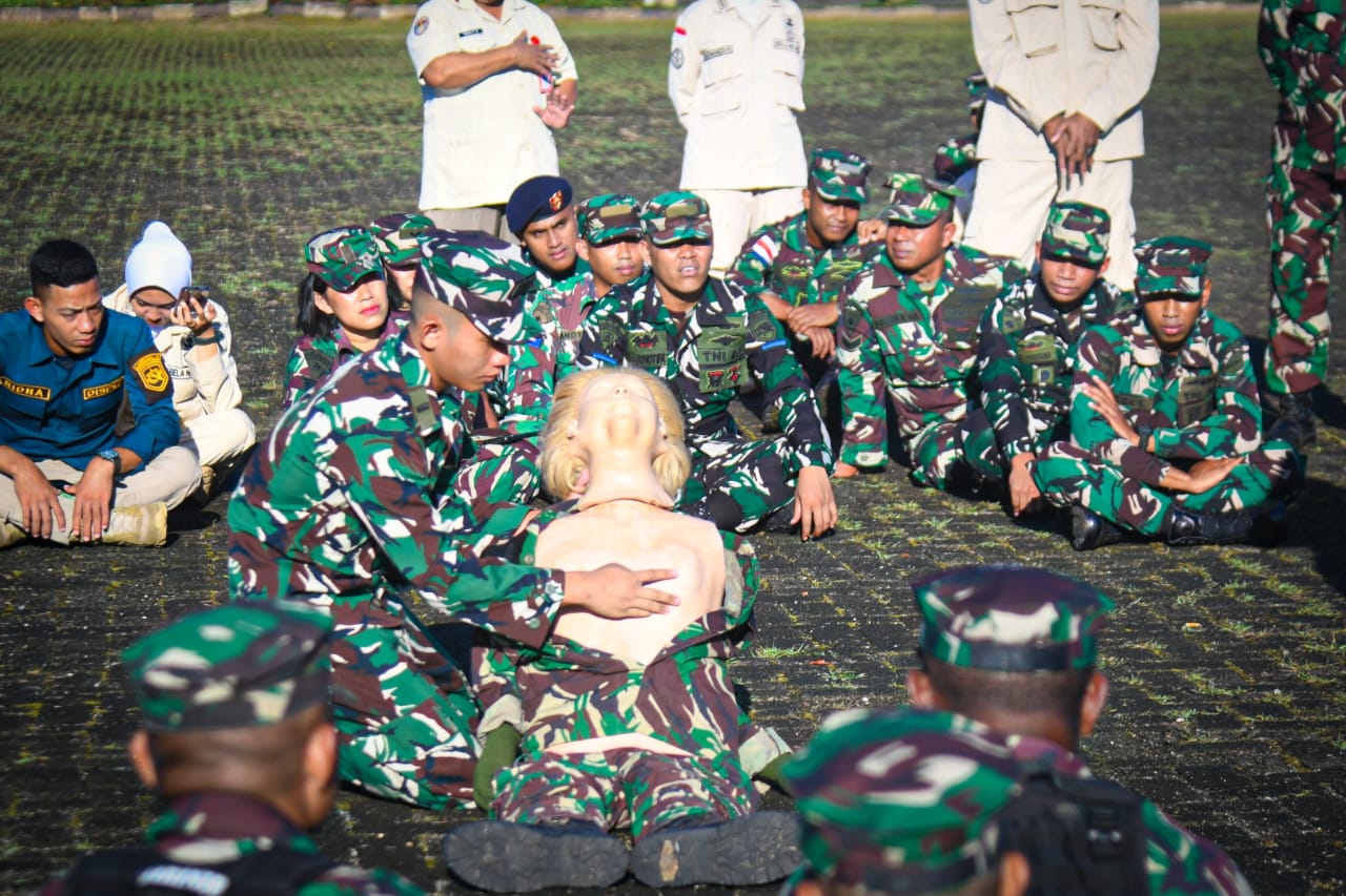 Brigjen Suwandi menyampaikan kepada seluruh prajurit dan PNS “Pelatihan ini sangat vital karena dalam banyak kasus, pertolongan pertama yang cepat dan tepat dapat menyelamatkan nyawa sebelum tenaga medis profesional tiba. Bagi TNI, keterampilan ini tidak hanya relevan dalam operasi militer, tetapi juga dalam tugas kemanusiaan dan penanggulangan bencana,” pungkas Danlantamal IX. (Dispen Lantamal IX)