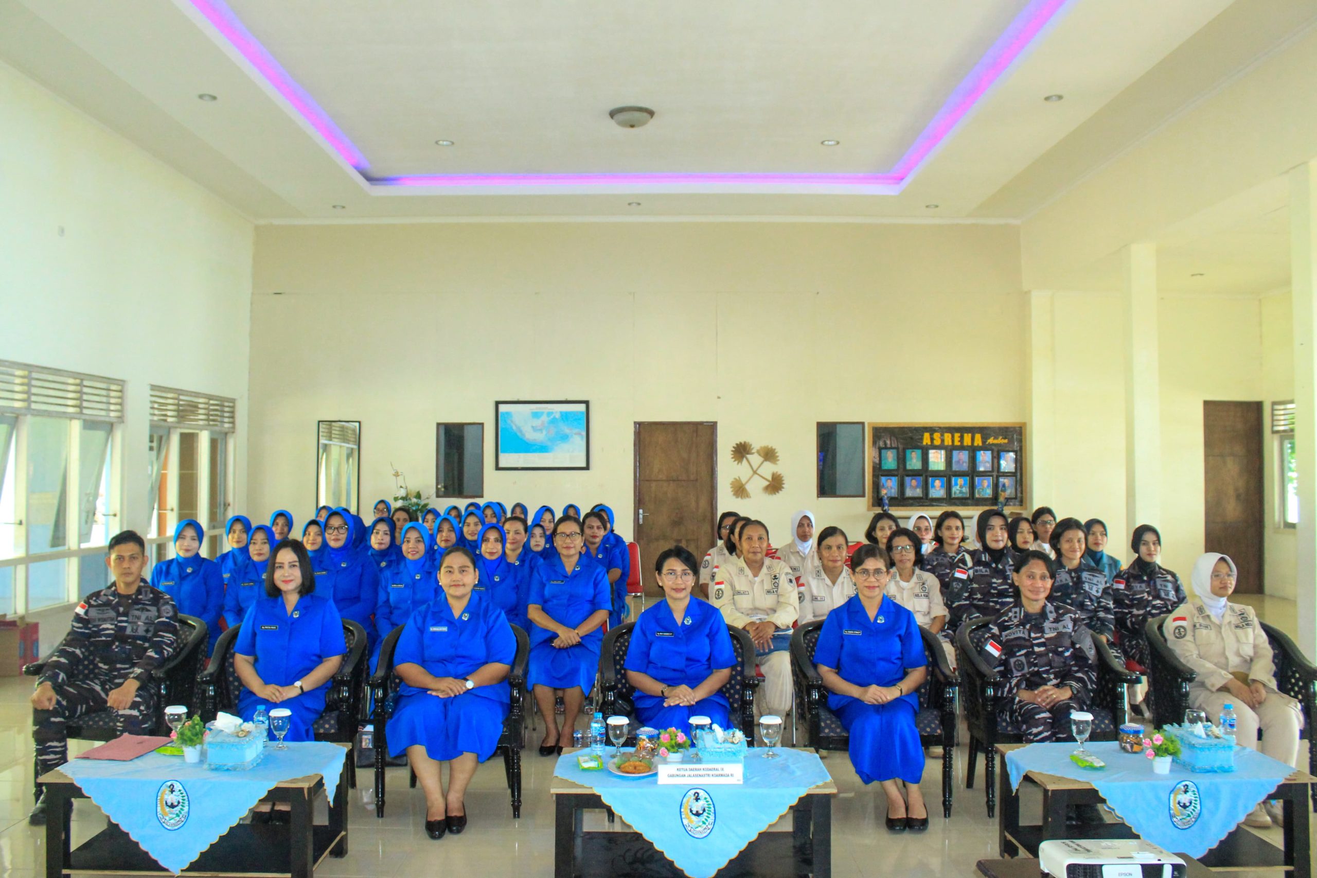Ketua Daerah Kodaeral IX Gabungan Jalasenastri Koarmada Rl, Ny. Inca Hanarko Djodi Pamungkas hadir bersama jajarannya mengikuti sosialisasi secara virtual yang dipusatkan di Auditorium Denma Mabesal, Cilangkap, Jakarta dan dibuka secara langsung oleh Ketua Umum Jalasenastri, Ny. Fera Muhammad Ali.