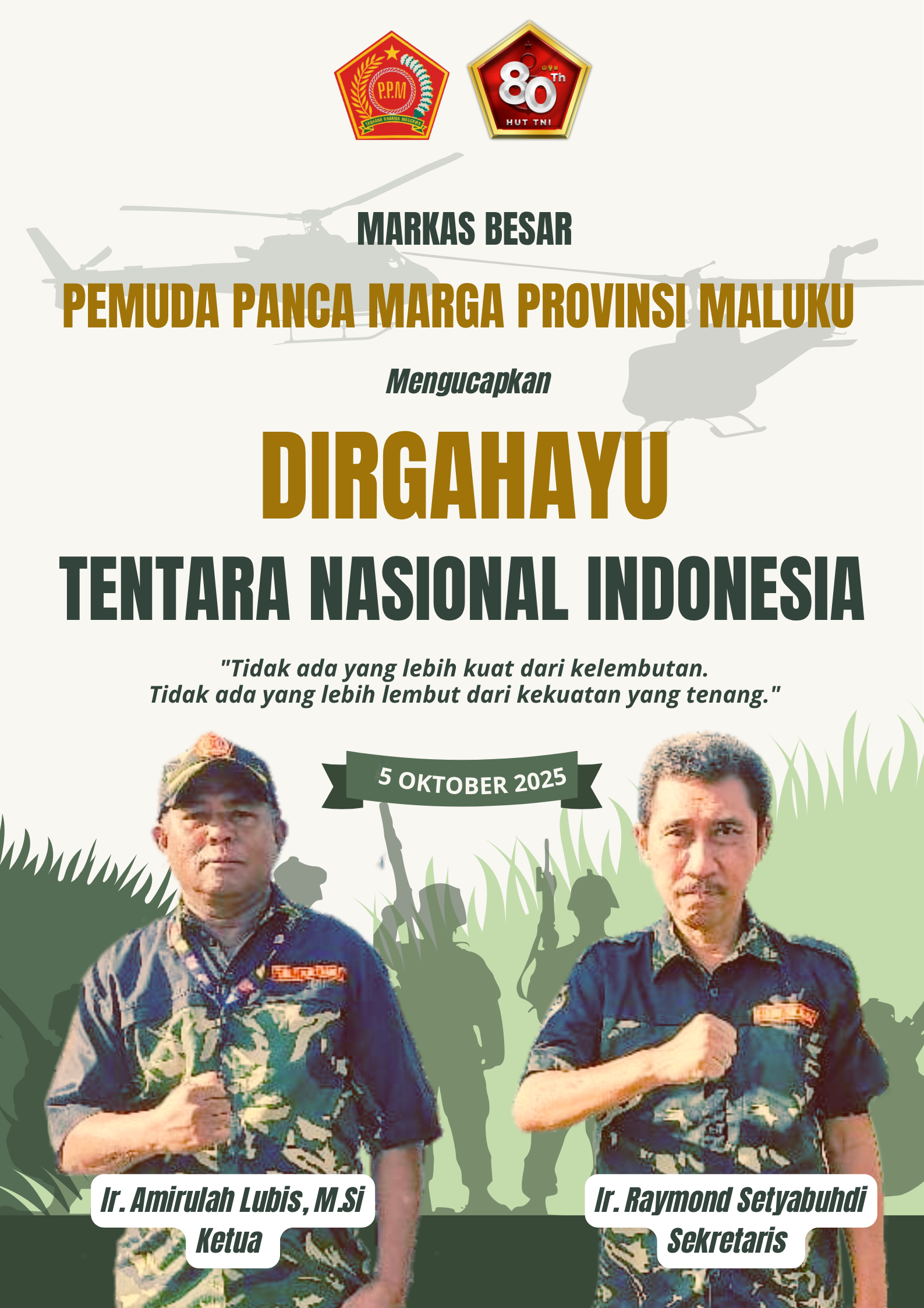 Oktober 3, 2025Oktober 3, 2025oleh manggurebemaju Iklan Markas Besar Pemuda Panca Marga Provinsi Maluku Mengucapkan Dirgahayu TNI Ke 80 Tahun, 5 Oktober 2025 manggurebemaju-Iklan-438 Dilihat Post Views: 438 Jangan LewatkanBPPRD Kota Ambon Mengucapkan Selamat Paskah Kristus Tahun 2026Peserta Mudik Nyaman Bersama IFG Group 2026 Resmi Dilepas, Jasa Raharja Perkuat Perlindungan Perjalanan Pemudik.BPJN Maluku Mengucapkan Selamat Idul Fitri 1 Syawal 1447 H/ Tahun 2026Abdullah Vanath, S.Sos Wakil Gubernur Maluku Mengucapkan Selamat Idul Fitri 1 Syawal 1447 Hijriah/ Tahun 2026 Masehi. Minal Aidin Wal Faidzin Mohon Maaf Lahir BathinDr. Abidin Wakano, M.Ag Rektor UIN A.M Sangaji Ambon Mengucapkan Selamat Idul Fitri 1 Syawal 1447 Hijriah/ Tahun 2026 MasehiKasatker Pelaksanaan Prasarana Strategis Maluku Mengucapkan Selamat Hari Raya Idul Fitri 1 Syawal 1447 Hijriah/ Tahun 2026