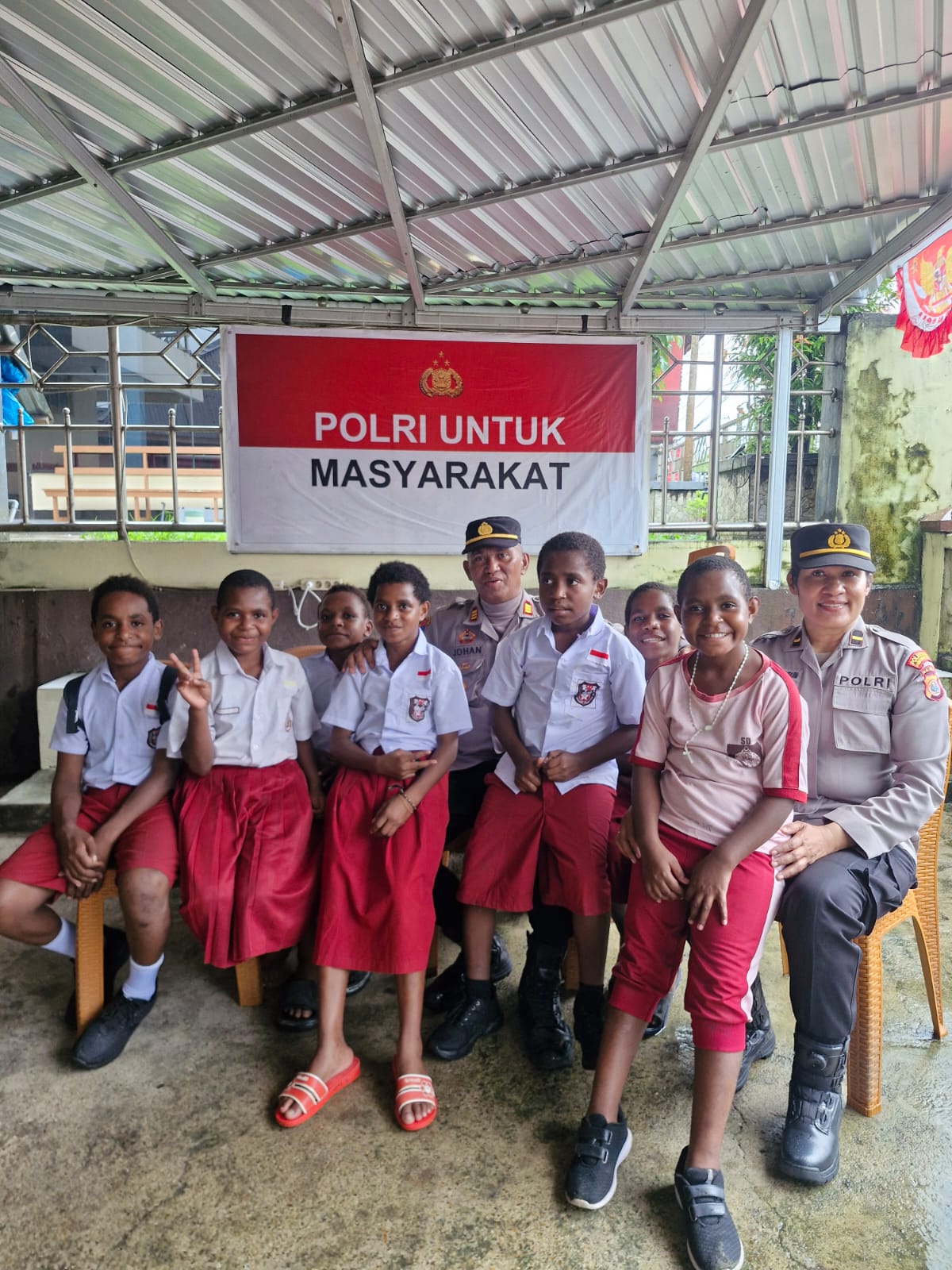 “Jangan pernah ragu untuk bercita-cita tinggi. Polisi, tentara, bupati, bahkan gubernur, semua itu mungkin jika kalian tekun dan cinta Indonesia,” ujar AKP Johan Anakotta dengan semangat.
