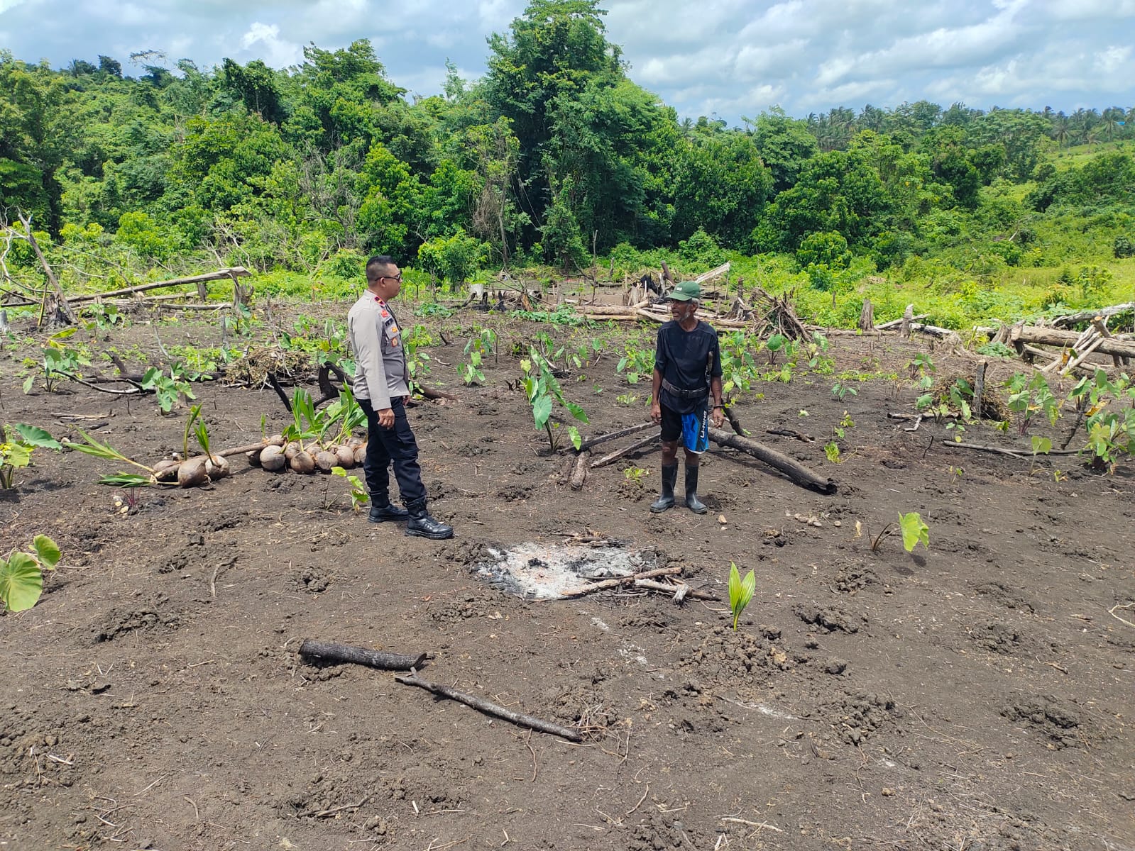 Kegiatan ini dipimpin langsung oleh Kapolsek Nirunmas, IPDA V. Luturmas, S.H., didampingi Bhabinkamtibmas Desa Arma, AIPDA Y. Tuarissa, serta melibatkan pemilik lahan, Adolf Daskunda, sebagai bentuk kolaborasi konkret antara Polri dan masyarakat.
