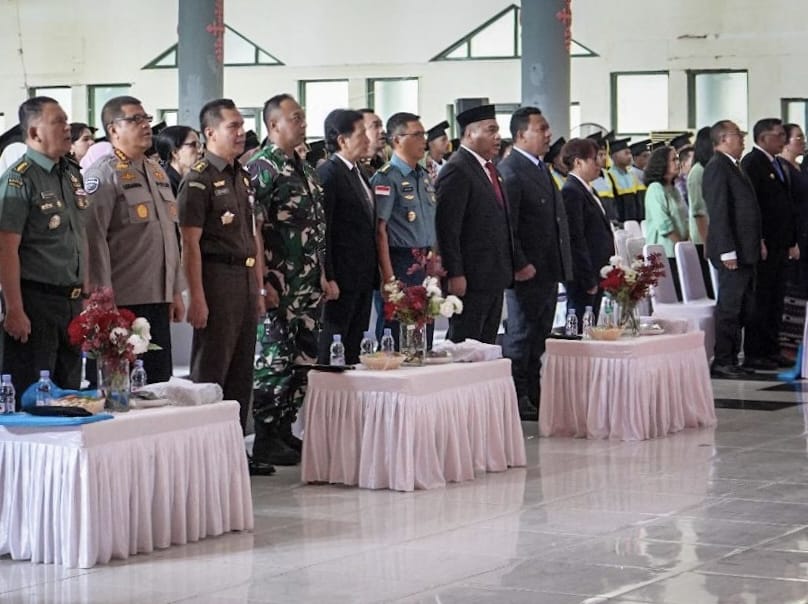 Rapat Senat dipimpin oleh Ketua Senat Unpatti, Prof. Dr. SEM Nirahua, SH. M.Hum tersebut, dihadiri Rektor Unpatti, Prof Dr Fredy Leiwakabessy M.Pd, para anggota senat Unpatti, para mantan rektor, sivitas akademika, wisudawan, orang tua dan unsur Forkopimda. (@Dispen Kodaeral lX).