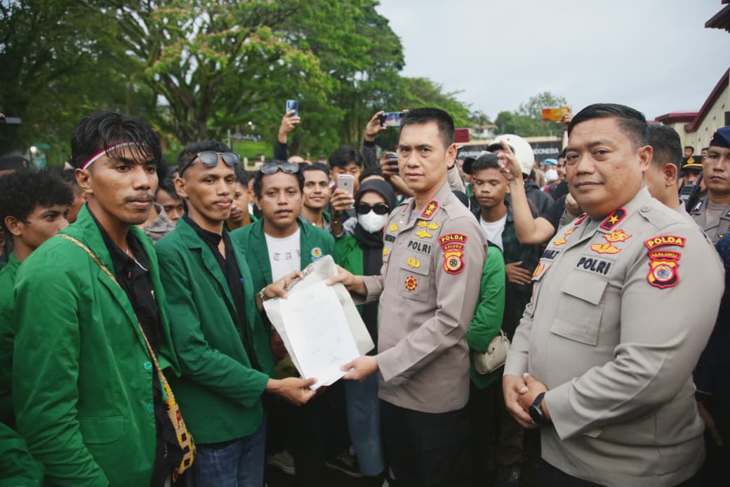 Didampingi Wakapolda Maluku Brigjen Pol. Imam Thobroni S.I.K., M.H, Kapolda menerima langsung tuntutan massa aksi dari mahasiswa Universitas Islam Negeri (UIN) AM. SANGAJI Ambon.