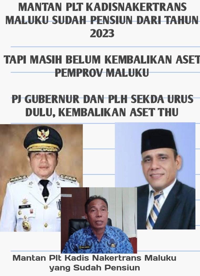 MANGGUREBEMAJU.COM, MIRIS Pejabat Sudah Pensiun Sejak 2023 yakni Mantan Kadis Nakertrans Provinsi Endang Diponegoro masih menikmati aset Pemerintah Provinsi Maluku dirumah pribadinya. Tentu hal ini menyalahi aturan dan perlu ketegasan dari Pj Gubernur Maluku Ir. Sadalie dan Plh Sekda Maluku Ir. Syuryadi Sabirin, “Kata sumber kepada media ini. Rabu 11 Februari 2025 di Kota Ambon.