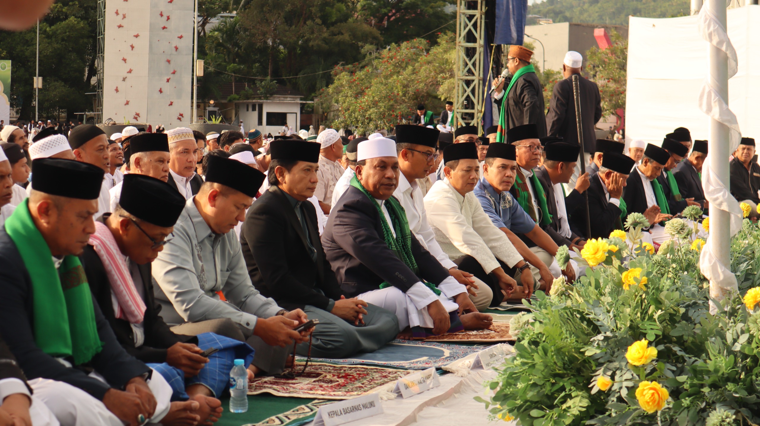 Untuk Diketahui bertindak sebagai Imam yakni Ustad Ibnujarir dan Khatib Wakil Gubernur Maluku H. Abdullah Vanath.