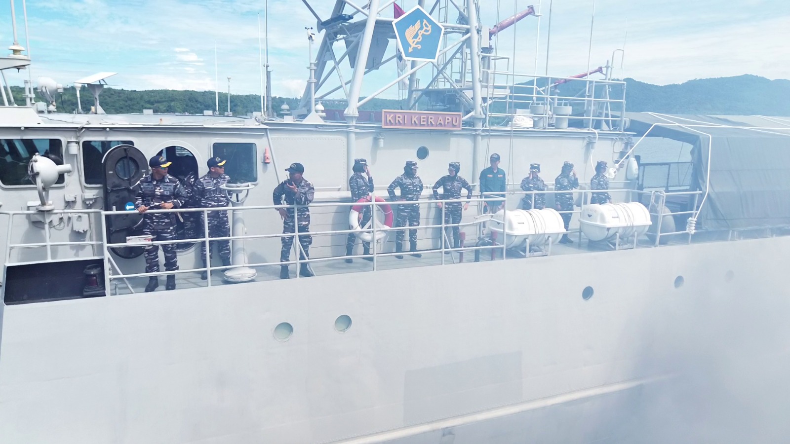 MANGGUREBEMAJU.COM, TNI Angkatan Laut. Komando Daerah Angkatan Laut (Kodaeral) IX Ambon. Komandan Komando Daerah TNI Angkatan Laut (Dankodaeral) IX Laksamana Muda TNI Hanarko Djodi Pamungkas S.H. gunakan kapal perang KRI Kerapu-812 laksanakan misi Operasi Tombak Sakti-25 untuk menjaga keamanan laut di wilayah kerja Kodaeral IX sekaligus mendukung misi kemanusiaan Bakti Kesehatan dan Komsos yang merupakan rangkaian giat menyongsong Hari Armada RI tahun 2025.