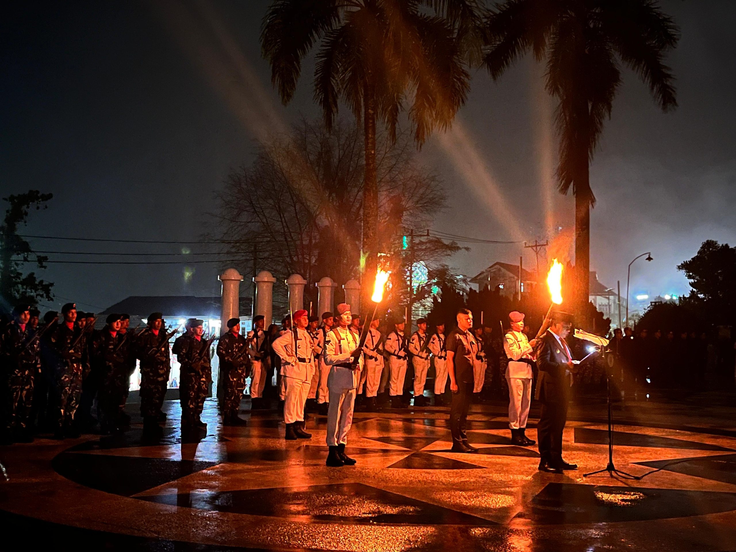 MANGGUREBEMAJU.COM, AMBON – Di bawah derasnya hujan malam yang membasahi bumi Pattimura, dan dalam cahaya obor yang menyala syahdu, Pemerintah Provinsi Maluku menggelar apel kehormatan dan renungan suci untuk mengenang jasa para pahlawan bangsa.