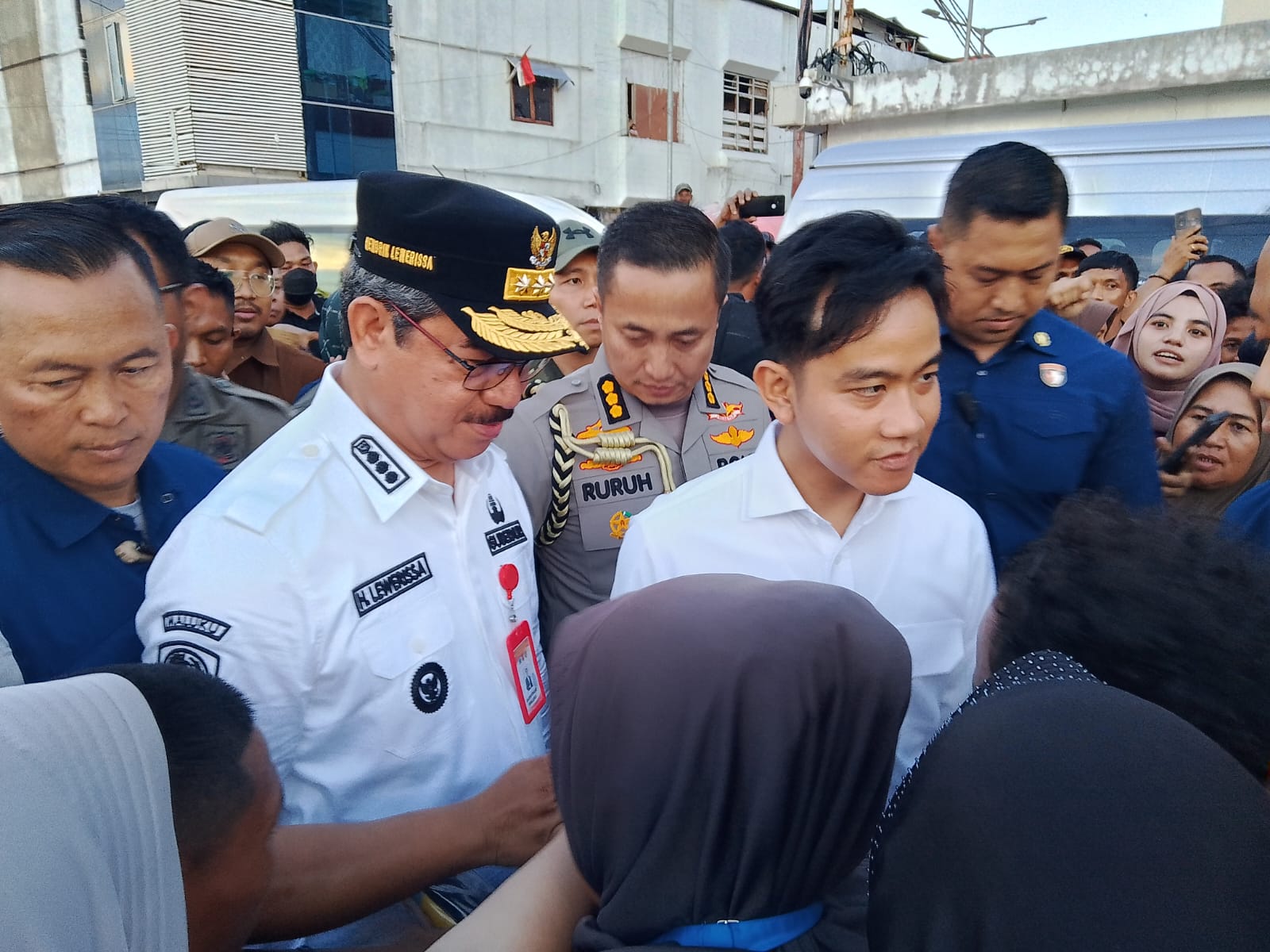 MANGGUREBEMAJU.COM, AMBON – Suasana Pasar Mardika, Ambon, mendadak riuh, Selasa (14/10/2025) sore. Ribuan warga dan pedagang tumpah ruah menyambut kedatangan Wakil Presiden Republik Indonesia, Gibran Rakabuming Raka, yang didampingi Gubernur Maluku, Hendrik Lewerissa, serta Wali Kota Ambon, Bodewin Wattimena.